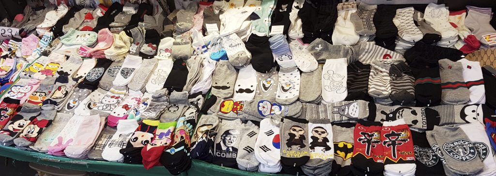 Habar n-am de unde vine pasiunea asta a coreenilor pentru sosete: probabil ca de la obiceiul lor (al asiaticilor, in general) de a nu intra incaltati nici in casa, nici in alte locuri. Iar pentru mersul in sala de baie exista papuci aparte de cei folositi pentru camera.