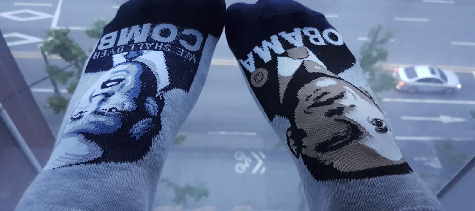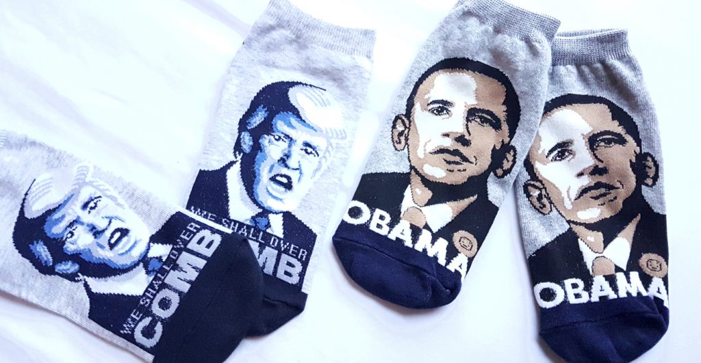 Gasesti sosete peste tot, in toate culorile si cu toate imprimeurile. Si, totusi: sa "calci in picioare" presedintii Statelor Unite… e ceva !
